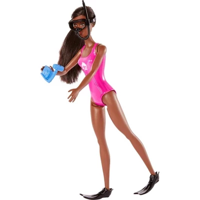- Kids can dress Barbie doll in her snorkel gear, including mask and fins, to explore life below sea level!