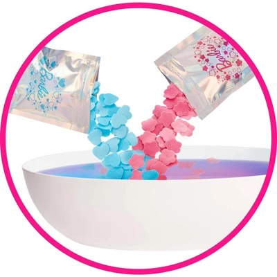 - Two bags of confetti soap are included (pink and blue) which change the bath water the same color -so cool! The bags are resealable for future use