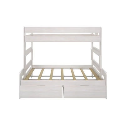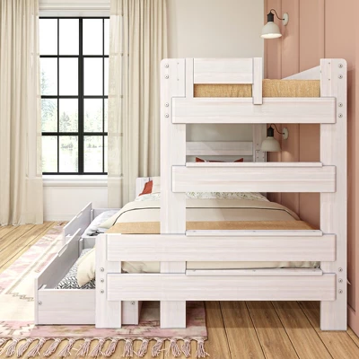 Bring the fun of the farm in with the Modern Farmhouse Twin Over Full Bunk Bed with Storage Drawers from Max & Lily. With a fabulous barnwood finish and enhanced safety, this bed offers the perfect combination of fun and functional that kids and parents love. The durable, non-toxic, low-VOC finish makes this bed a safe choice for any kids room. Sleep and storytimes feel secure thanks to a 400 lb resting weight capacity for each sleeping surface. Added storage drawers makes organizing simple. Solid New Zealand pine wood construction, solid plywood slats and metal support bar provide strong, durable support. Works with standard twin and full-size mattresses and does not require box springs or bunkie boards. Super safe design meets or exceeds Federal safety standards for kids furniture. Ships in one box with instructions and hardware included. 2+ adults make assembly quick and easy. When itās time for play, this bedsā space saving design frees up plenty of room for kids to be kids. The Modern Farmhouse Twin Over Full Bunk Bed with Storage Drawers from Max & Lily offers exceptional quality and affordability that kids and their parents will enjoy for years to come. Max & Lily is a member of the Maxwood family of brands – the kids furniture experts bringing a tradition of superior quality, safety and fun!