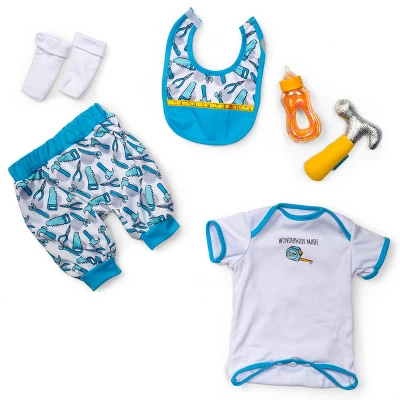 Comes with a onesie, bib, pants, white socks, magic juice bottle, and hammer plush toy
