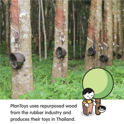 - Designed using PlanWoodÂ, a unique PlanToys material that utilizes surplus sawdust and wood scraps to create a sustainable, flexible wooden material
