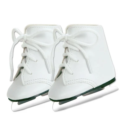 - INCLUDED: One pair of white faux leather ice skates with white shoe laces and metal “blades” sized for 18 inch dolls.
