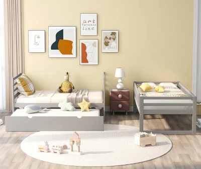 Twin Over Twin Wood Bunk Bed With Safety Rail And Movable Trundle-ModernLuxe
