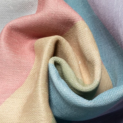 - Dynamic rainbow stripes pattern in a bright multicolor palette.